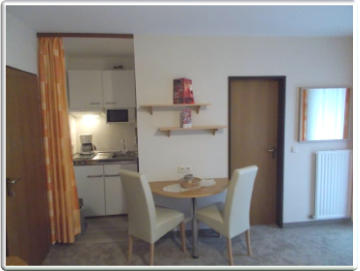 Unsere Ferienwohnung ist mit einer kleinen Küche inkl. Mikrowelle ausgestattet.